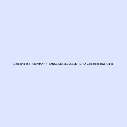 Decoding the PSEPMANHATTANSE SESELB5SESE PDF: A Comprehensive Guide