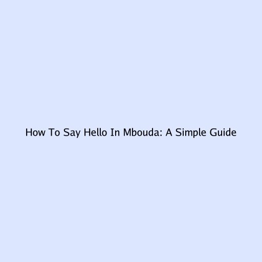 How To Say Hello In Mbouda: A Simple Guide